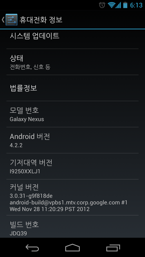 어제 저녁에 젤리빈 4.2.2가 공개되었다는 이야기를 듣고 내 갤럭시 넥서스는 언제 업데이트가 되나 내심 기대를
