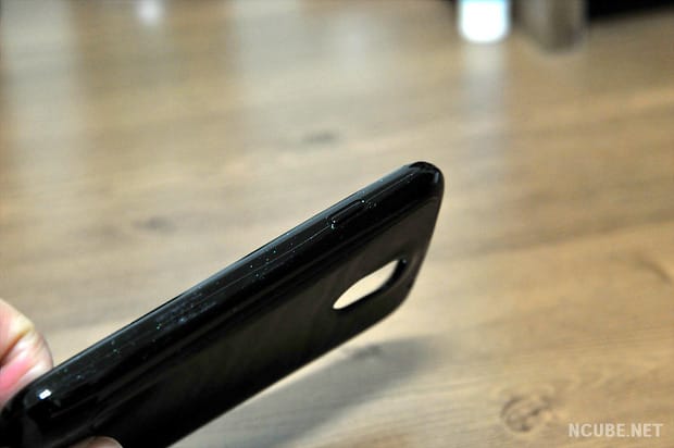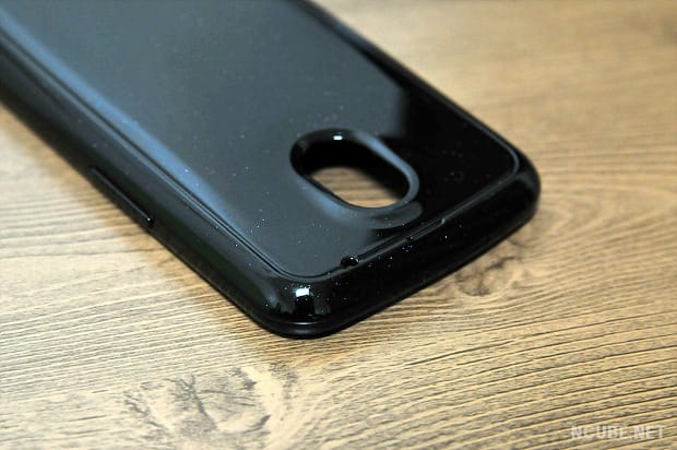 소용량 배터리 커버를 장착하고 케이스를 끼우면 후면에 약간의 공간이 느껴진다. 이건 갤럭시 넥서스의 특징이라..