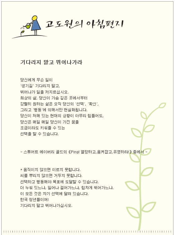 [고도원의 아침편지] 기다리지 말고 뛰어나가라