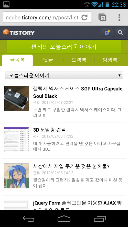 달리 받침이 추가 되지 않는다. 뭐 이런 경우가.. 그렇다면 기본 ICS 브라우저 문제였던 걸까? 그런가? 이상하네..