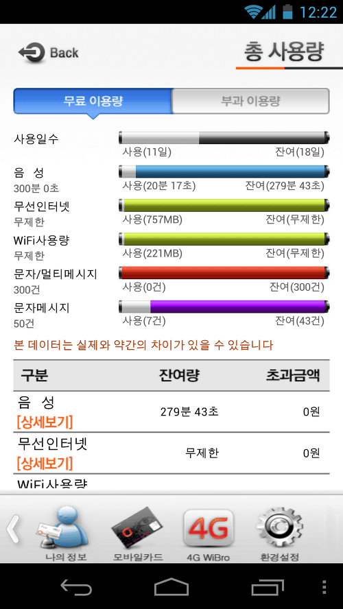 생각해보면 디자이어 때는 한달에 100MB 쓰는 것도 사실 쉽지 않았다. 버스 도착시간이나 메일 확인 정도가 하는