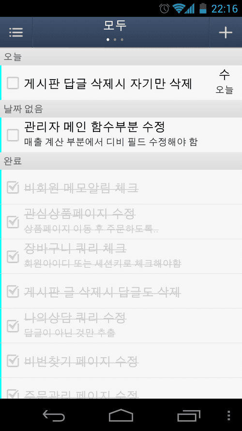 출/퇴근 시간에 간간히 생각나는 할 일들을 정리하는데 편하고 좋다. 덕분이 해야할 일은 잊지 않게 돼서 나 역시도