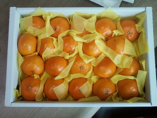 제주도에서 배달되어 온 천혜향이다. 저 박스에 20개의 천혜향이 들어있다. 가격은 배송비포함 23,000원..