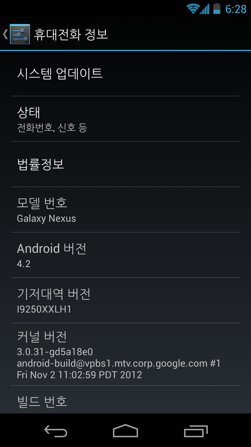 3일전 아침에 눈을 뜨니 도착해 있던 젤리빈 4.2 업데이트 알림.. 구글 팩토리롬 이미지를 설치한 후 처음 받은