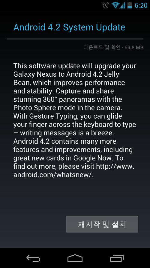 갤럭시 넥서스 젤리빈 4.2 업데이트