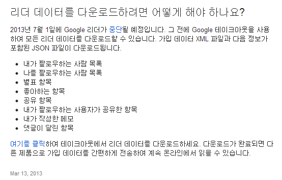 구글이 왜 이러는 건지 모르겠다. 아직 대체 서비스는 마땅한 게 없는 것 같고.. 피드가 많지는 않지만
