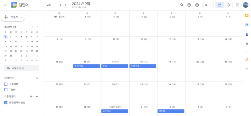 PC에서 웹브라우저를 이용해 https://calendar.google.com/ 에 접속한다.