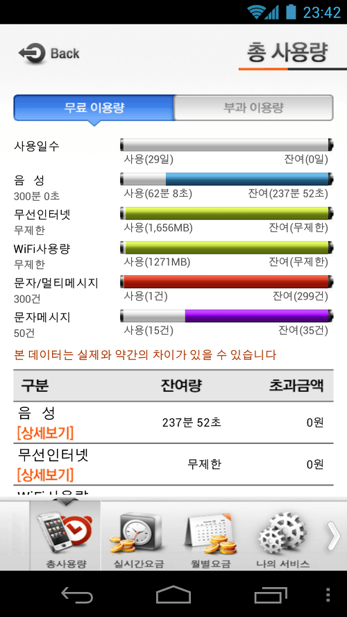 데이터 사용량이 얼마나 되나 해서 봤는데.. 허걱! 3G 사용량만 1.6기가 넘어가네.. 거기다 Wi-Fi 사용량도 1.2기가..