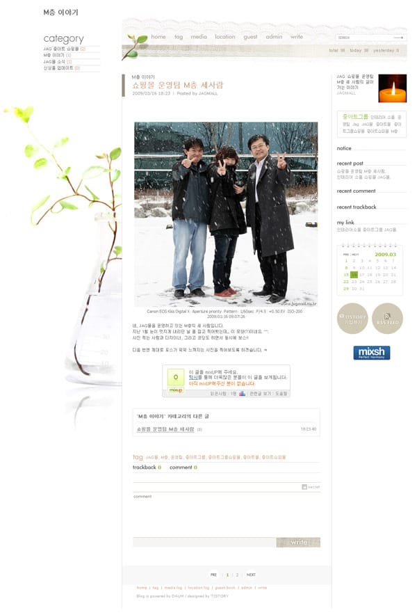문득 무슨 생각이 들었는지.. 그냥 하나 블로그를 만들어 버렸습니다. M층에 사는 세 사람의 이야기를 기록하기
