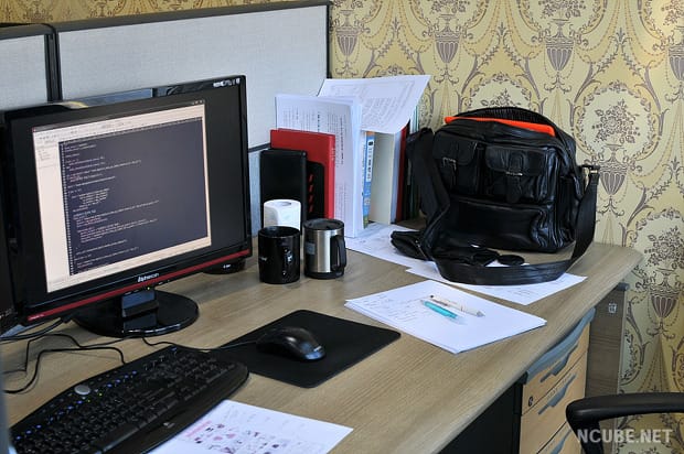 사무실을 옮긴 기념으로 사무실 내자리를 카메라에 담아봤다. 창문에 가까이 붙어 있어서 35mm 렌즈로는 이 정도가