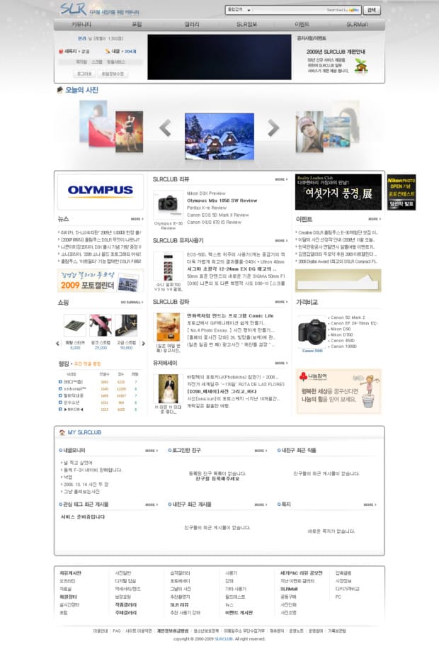SLRCLUB이 얼마전 새롭게 리뉴얼을 했는데 전 메인페이지에 익숙해서 일까? 아직도 방문할 때마다 뭔가 어색함을 느낀다. 매일 스릴을 느낄 수 있었던 뺑뺑이는 도대체 어딜 간것인지.. 그거 하는 재미로 매일 방문했는데 그게 없으니 방문하기가 좀 그렇다. ㅎ SLRCLUB도 회사이다 보니 상업적으로 변해가는 것은 어쩔 수 없는 일이라 생각은 되지만 왠지 난 썰렁했던 적어도 회사 냄새보단 동호회같았던 전의 모습이 더 마음에 드는 것 같다. ^____^