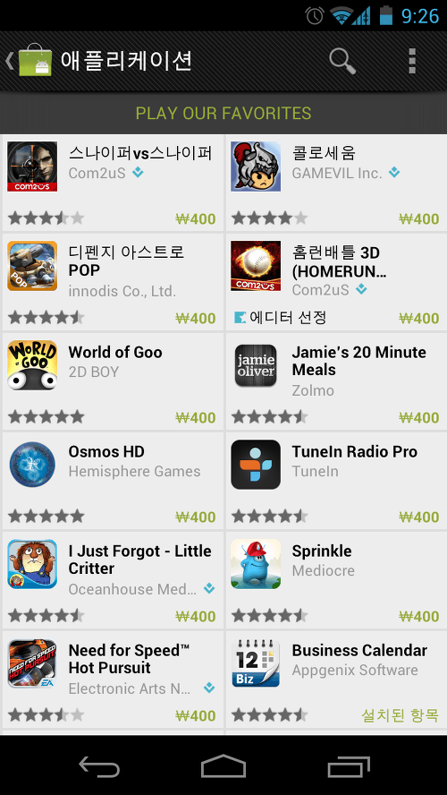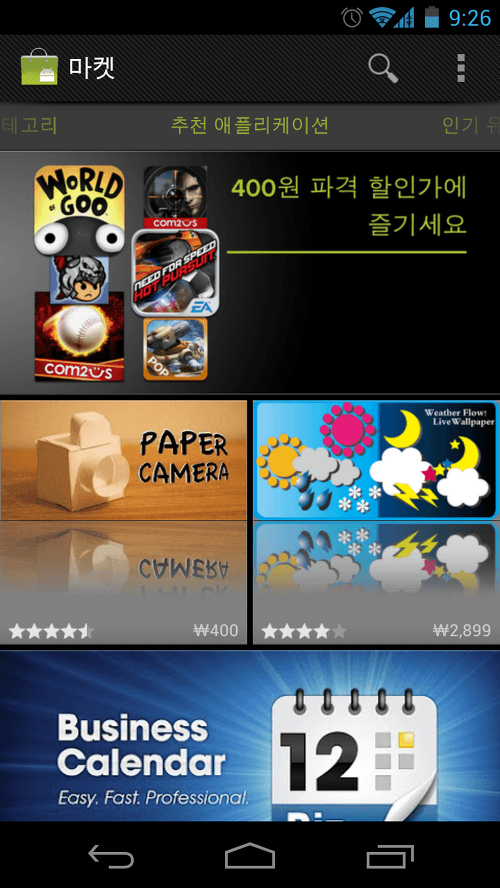 안드로이드 마켓의 이름이 Google Play로 변경되나 보다. 그 일환으로 지금 몇개의 어플을 저렴하게 파는 이벤트 중