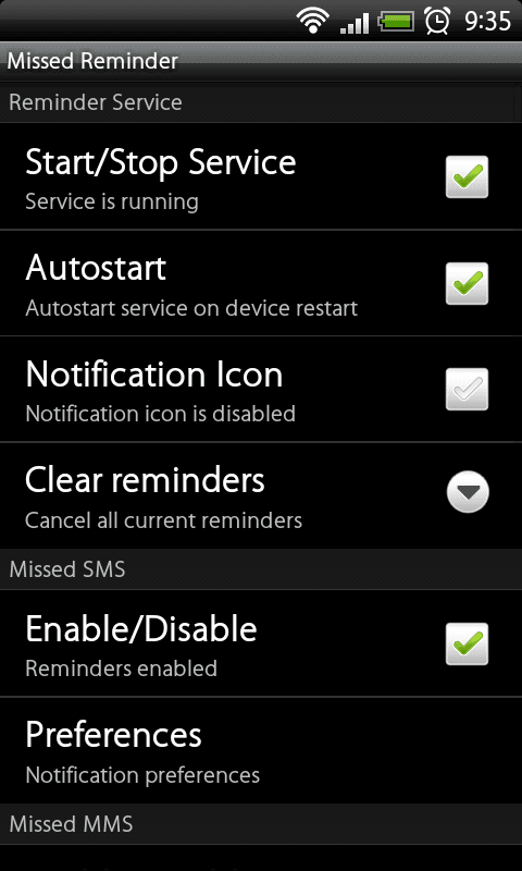 안드로이드 마켓에서 Missed Reminder 라고 검색하면 설치할 수 있다. 무료 어플이다.