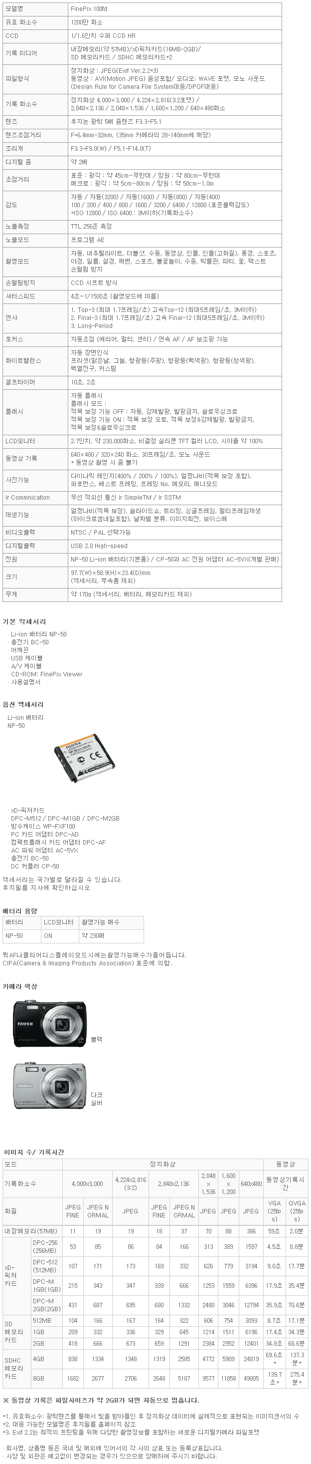 아래는 F100fd의 사양이다. www.fujifilm.co.kr 사이트에서 가져왔다.
