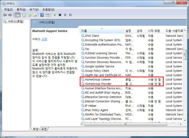 홈그룹을 사용하지 않는다면 깔끔하게 제거하는 것도 좋은 것 같습니다. ^^