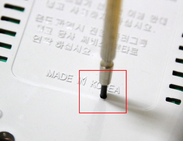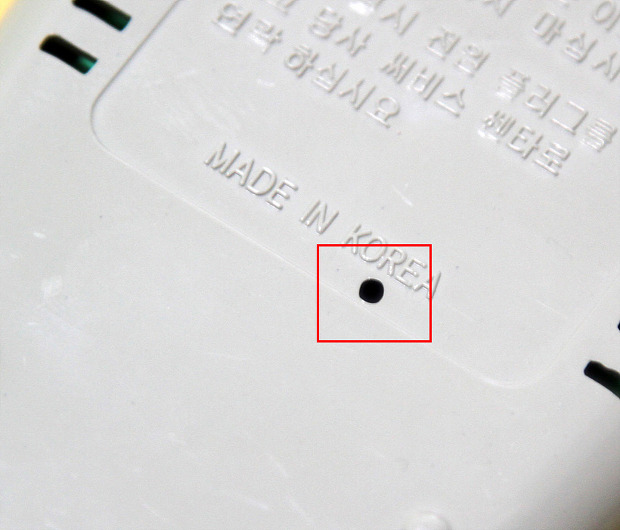 전기장판/요의 온도조절기 뒷면을 보면 사진처럼 작은 구멍이 하나 있다. 대부분의 조절기에 있다고 한다. 이 구멍