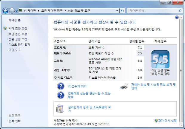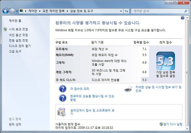 저 수치는 윈도우 비스타나 윈도우 7을 사용하신다면