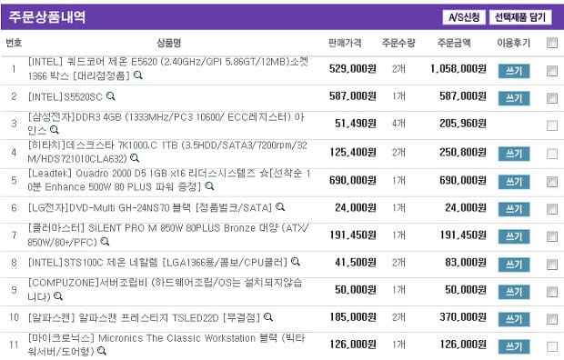 이렇게 견적내고 그날 바로 주문을 했었는데.. 그냥 받아서 윈도우 설치하느라 난 무지하게 힘들었던 기억이.. ㅋㅋ