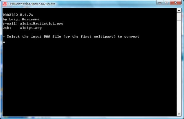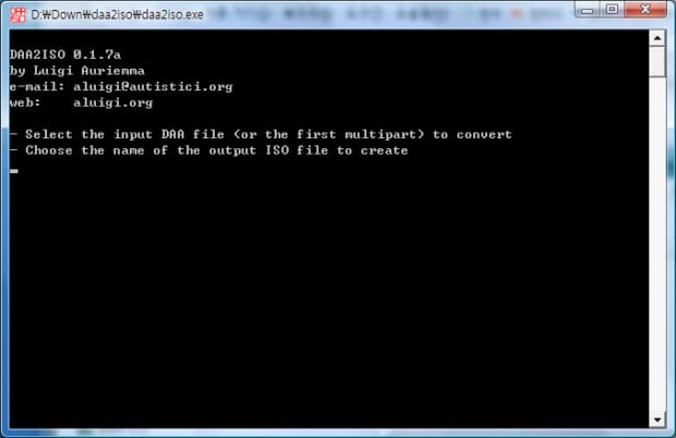 daa2iso.zip 파일을 다운 받은 후 압축을 푼 후 daa2iso.exe 파일을 실행하면 아래와 같은 창이 실행된다.