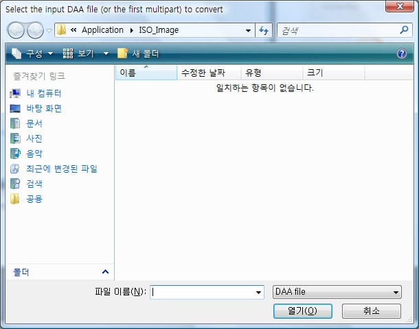동시에 아래와 같은 daa 파일의 경로를 지정하는 창이 뜨면 이곳에서 daa 파일이 있는 곳을 지정해 주면 된다.