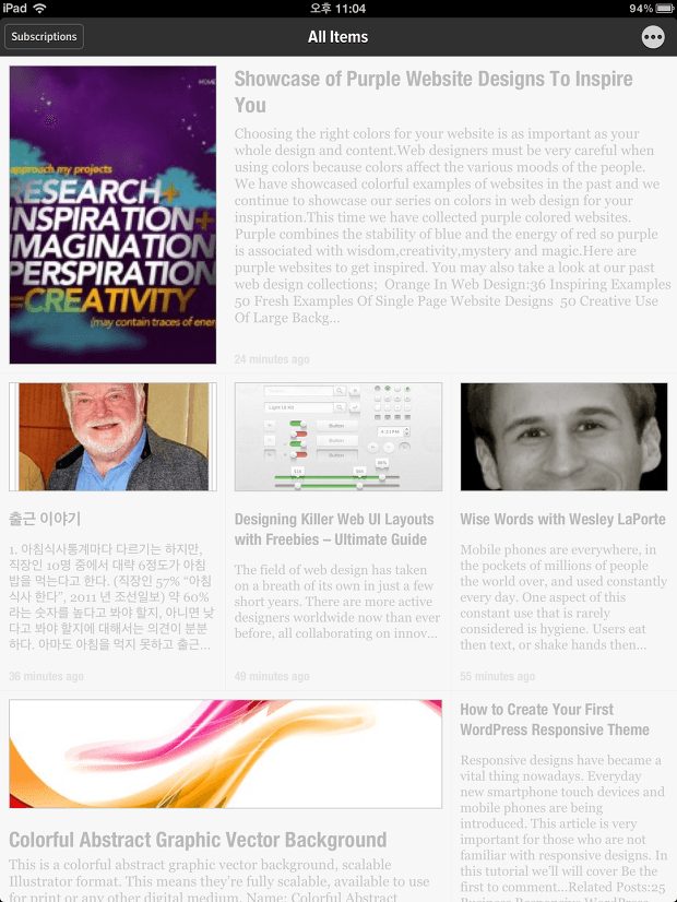 놀 수가 있었다. 갤럭시넥서스도 그렇고 제일 많이 사용하는 것은 구글리더인데 아이패드에선 구글에서 아이패드용