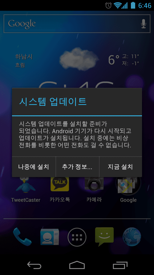 어제 갤럭시 넥서스 OTA가 진행 중이라는 글을 보고 내껀 언제오나 수시로 확인을 했는데 결국은 오지 않고