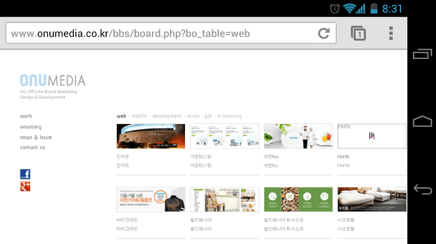 첫번째 스크린샷은 갤럭시 넥서스에서 크롬 브라우저로 접속해본 모습이고 두번째는 ICS 순정브라우저로 접속한
