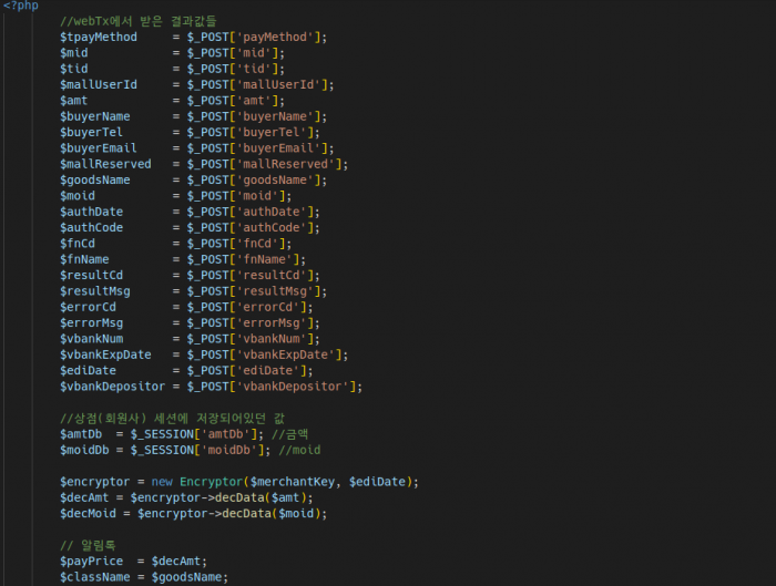 예전 영카트5 개발을 진행할 때 KCP, 이니시스, LG U+ 3개 업체의 PG 연동 작업을 진행해본 적이 있어 작업엔 무리가 없다. 다만 업체마다 결제요청 때 전송하는 항목이 다르고 변수명도 달라서 혼란스러울 때가 적잖이 있다. 아! PC 결제와 모바일 결제도 다르기 때문에 주의를 제법 기울여야 하는데.. 지금 작업 중인 제이티넷 tPay의 경우 PC 결제와 모바일 결제 항목과 변수명이 거의 동일해서 생각보다 빠르게 진행이 되고 있다.