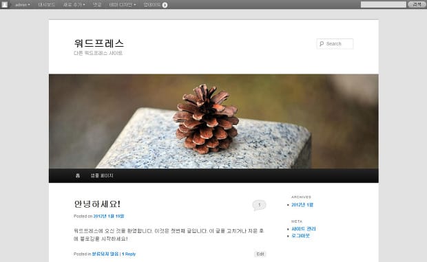 우선은 한글판을 다운로드해서 간단한 정보 입력 후 설치는 너무 쉽게 끝나버렸다. 티스토리와는 다르게 조금은 심플하다 못해 썰렁함까지 느껴지는 화면을 보면서… “뭐 이래…” 이런 생각을 잠시 했다. 뭘 기대한 것은 아닌데.. 하긴 이것은 꾸밀 수 있는 가능성을 충분히 열어두는 것이라 생각하면 오히려 장점이 될 수도 있는 부분이라 생각한다.