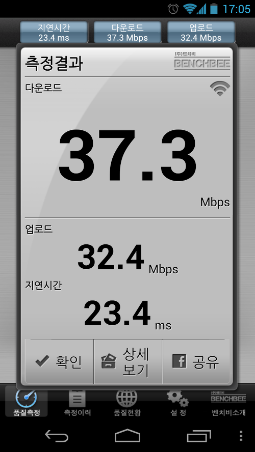 WiFi도 요즘 추세인 5GHz를 지원하는 제품으로 갤럭시 넥서스에 이상없이 연결이 됐는데 대충 속도를 측정